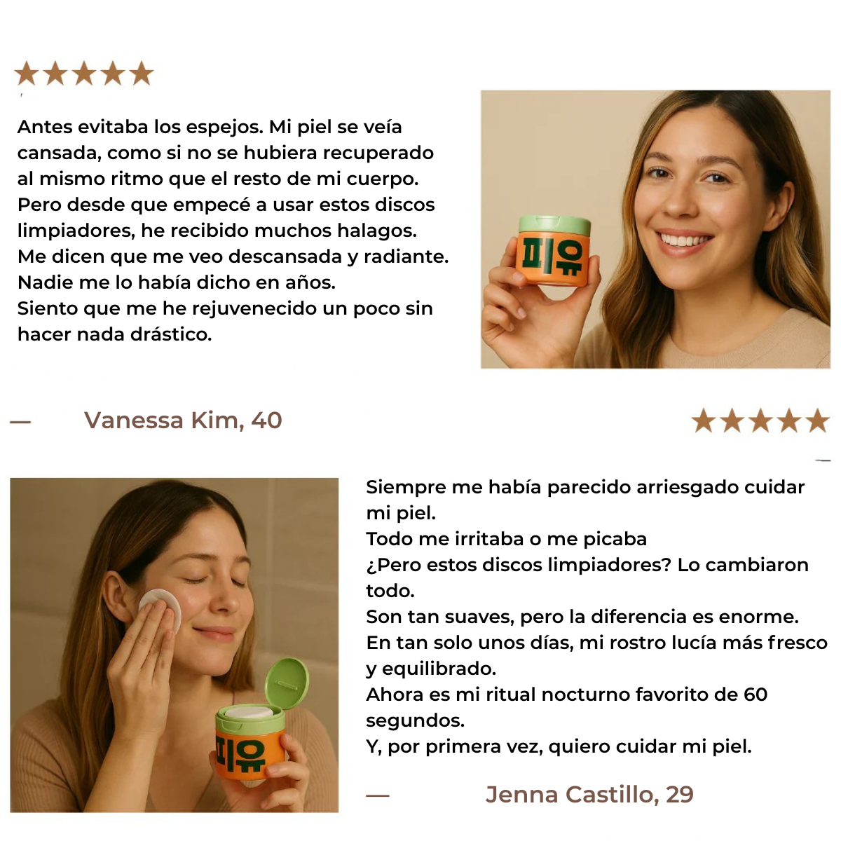 Gracias a la acción regeneradora de la Centella Asiática y el ácido hialurónico, los PURESKIN TONER PADS estimulan la producción de colágeno, suavizan líneas finas y ayudan a desvanecer manchas, dejando una piel más firme y uniforme.